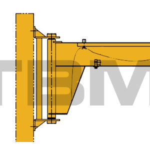 | L'asse di rotazione della gru a bandiera da 270° si trova su due alette sopra la colonna. Tra le alette superiori e inferiori e l'asse di rotazione sono installati cuscinetti di supporto piano e boccole in rame autolubrificanti. Ciò garantisce una rotazione flessibile e smorza l'oscillazione inerziale del braccio quando si ferma. I limiti dell'angolo di rotazione esterno vengono forniti per regolare l'angolo di rotazione del braccio. |