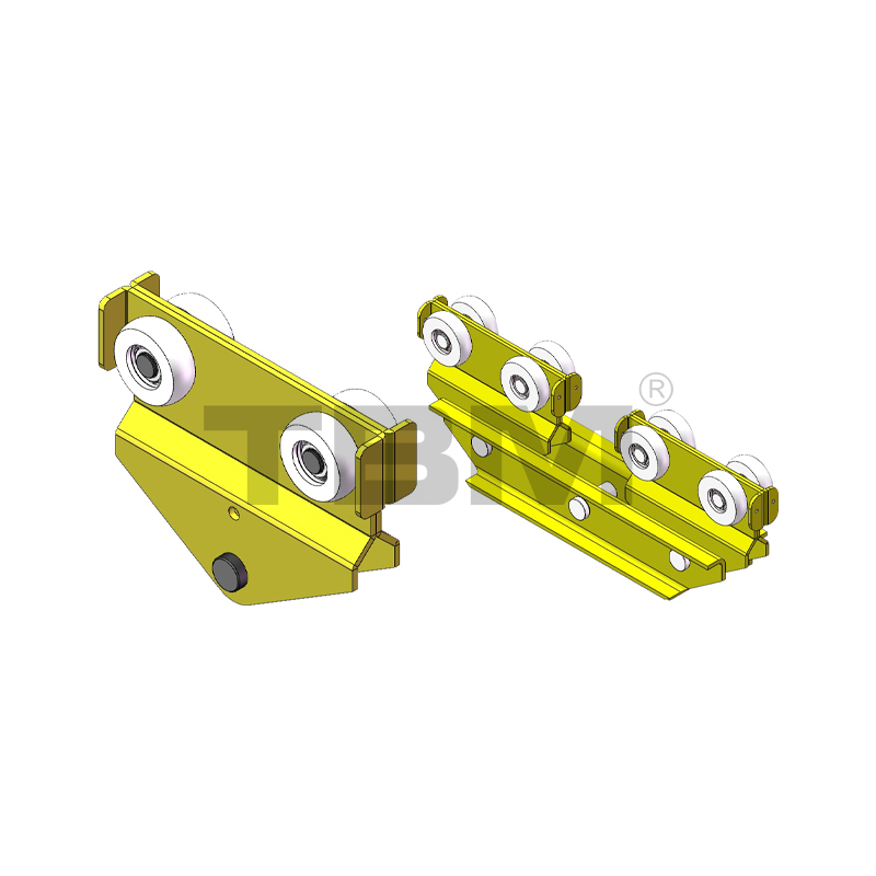 █Il carrello della trave principale viene utilizzato per appendere meccanismi di sollevamento, ecc. Le sue ruote sono realizzate in nylon ad alta resistenza e hanno una pendenza corrispondente, consentendo loro di conformarsi al battistrada della rotaia, garantendo un funzionamento regolare e un centraggio automatico. Le ali piegate su entrambe le estremità impediscono la caduta accidentale del carrello fuori dai binari, garantendo la massima sicurezza.